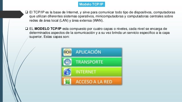 Acceso a la red internet transporte. El modelo tcp ip influenciado por el modelo osi también utiliza el enfoque modular utiliza módulos o capas pero sólo contiene cuatro.