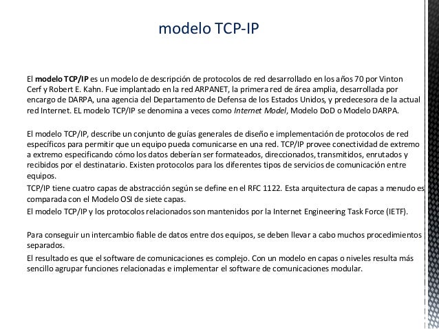 Modelo de arquitectura del protocolo tcp ip. Que desarrolló inicialmente el protocolo tcp ip. Capa 3 o capa de transporte. Capas del modelo tcp ip.