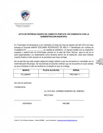 View acta de computo docx from english csc 1123 0 at institute of natural management sciences rawalpindi. Diciembre 13 de 2012 seor a el empleado con la presente acta se le hace entrega de la siguiente dotacin. Formato de acta de entrega equipos de computo procedimiento. En la fecha siendo las 10 00 horas del dia 05oct2011 presentes en la oficjna de recursos humanos de la ii dirtepol pnp chiclayo el mayor pnp robert escalante ramirez jefe unirehum pnp y el sos.