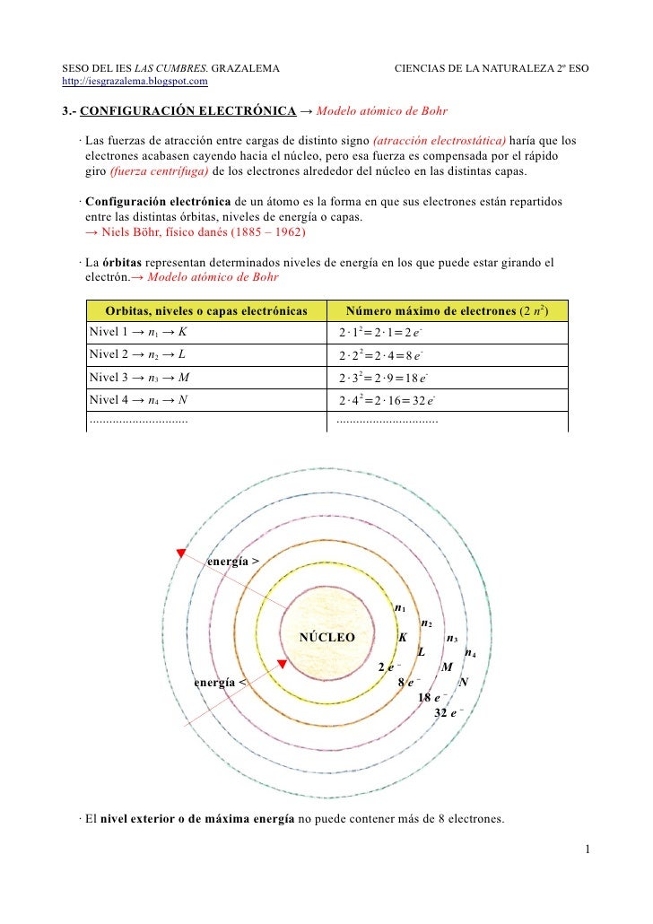 En física y química la configuración electrónica es la manera en la cual los electrones se estructuran o se modifican en un átomo molécula o en otra estructura físico química de acuerdo con el modelo de capas electrónico cualquier conjunto de electrones en un mismo estado cuántico deben cumplir el principio de exclusión de pauli al ser partículas idénticas. En la siguiente escena puede observarse la representación de los átomos de los 12 primeros elementos de la tabla periódica con este modelo. Este modelo fue desarrollado por muchos científicos de todo el mundo esta basado en el modelo de bohr ya que solo explica el comportamiento de los. Era el responsable de la radiactividad y en su interior las tremendas fuerzas nucleares mantenían unidos a los protones.