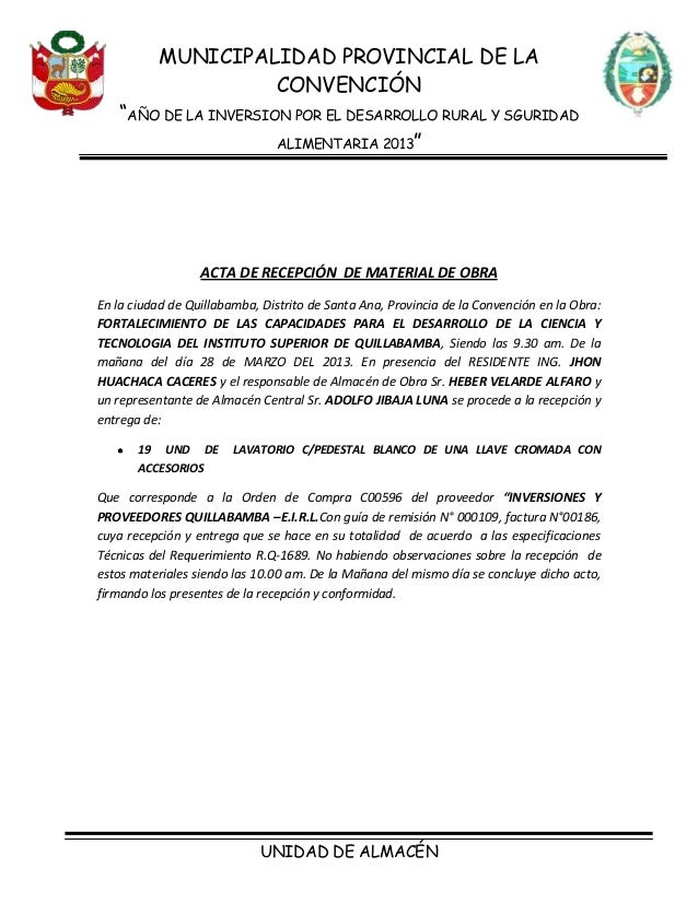 En la ciudad de pucallpa a los 27 días del mes de septiembre del 2017 por el presente documento se hace entrega a la srta. Diciembre 13 de 2012 seor a el empleado con la presente acta se le hace entrega de la siguiente dotacin. Lap top otro detallar marca modelo n s type product id especificaciones celular claro rsa securid 202972827 autenticador usb nro. Me podrían ayudar a redactar un acta de entrega de un cuatriciclo y dos traylers de mi futuro ex marido gracias.